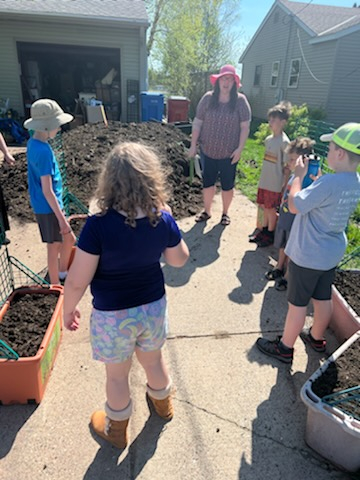 On the weekend we worked on getting the garden set up. We all moved dirt and filled up the beds Mom and Dad built last weekend. Then we went to get some plants to put in the ground. While we were there we saw Angie and Kyra.