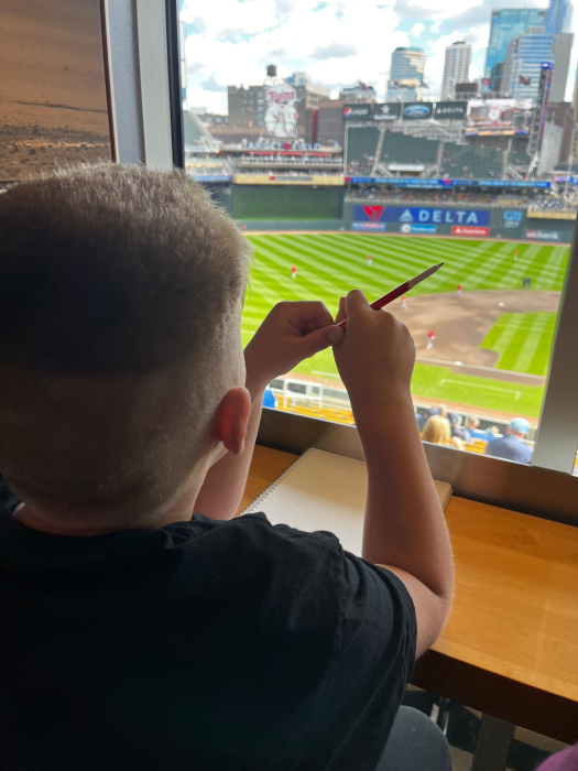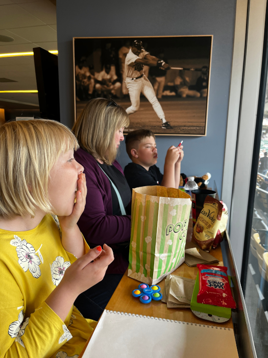 After church it was time for baseball! Kara dropped us off at the stadium early - and it was a perfect fall day to see a game.