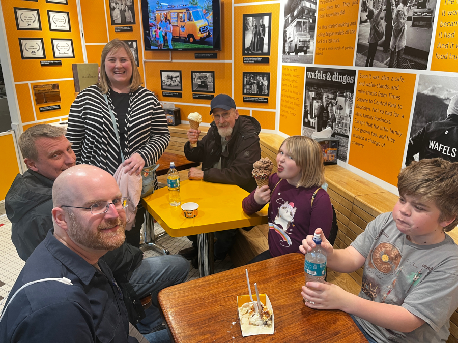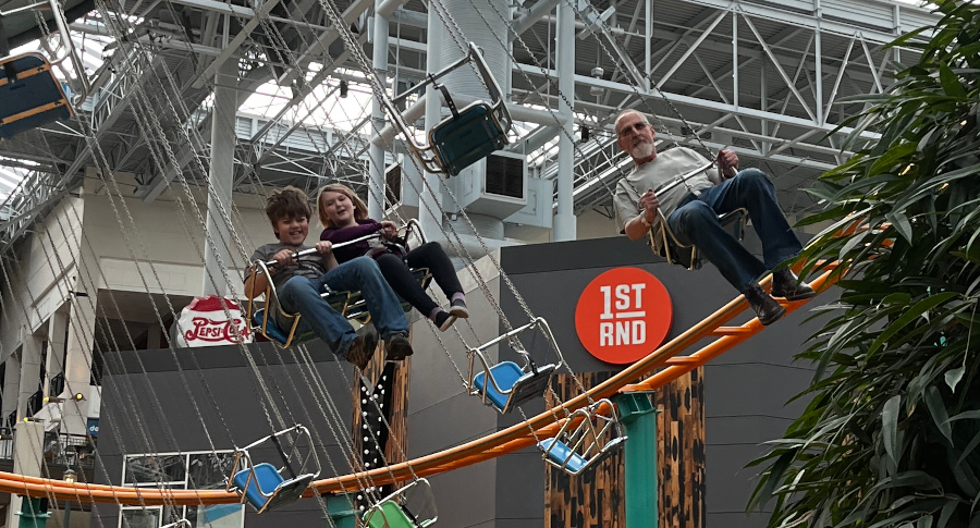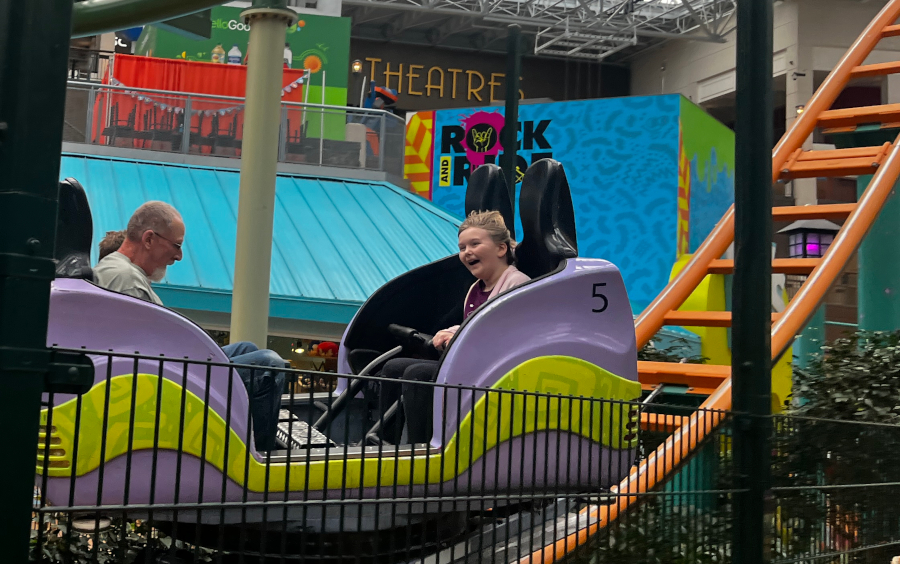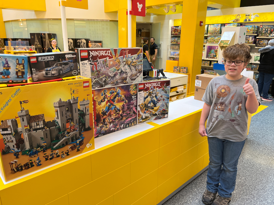 On Friday we picked up Grandpa Kevin and went to meet Kara and Freya for some fun. I got some presents, I got to go to the LEGO store, and we went on rides. A lot of rides.