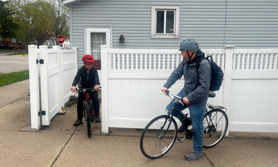 Dad and I rode our bikes to campus a few times.