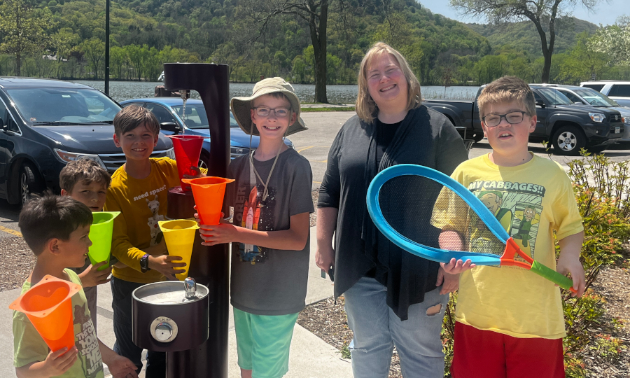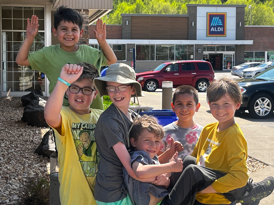 The whole gang out for ice cream to cool off.
