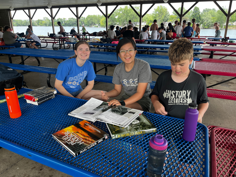 Other than swimming: I read a lot of books, I watched and listened to several Napoleon documentaries, and we watched a lot of movies together: Liar Liar, Butch Cassidy and the Sundance Kid, Braveheart, Robin Hood: Prince of Thieves, Dances With Wolves, and Dumb and Dumber.