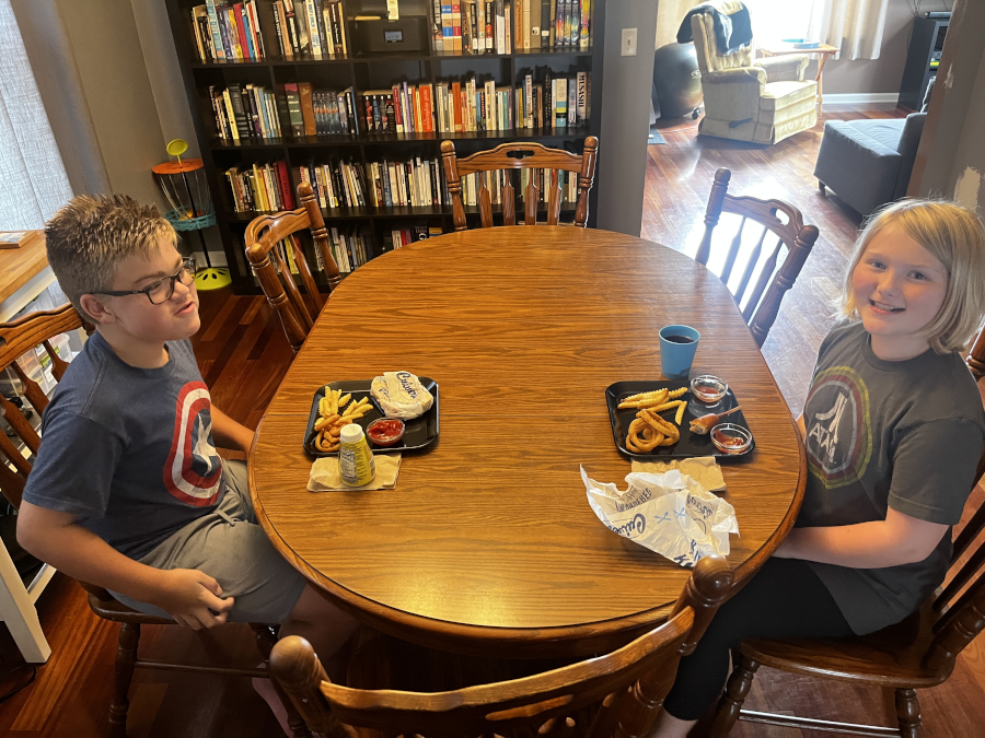 Day 4 was another swimming lesson, another lunch at Culver's with GG, Recess at the pool again, and our movie was Super Mario Brothers. Mom made pancakes for supper!