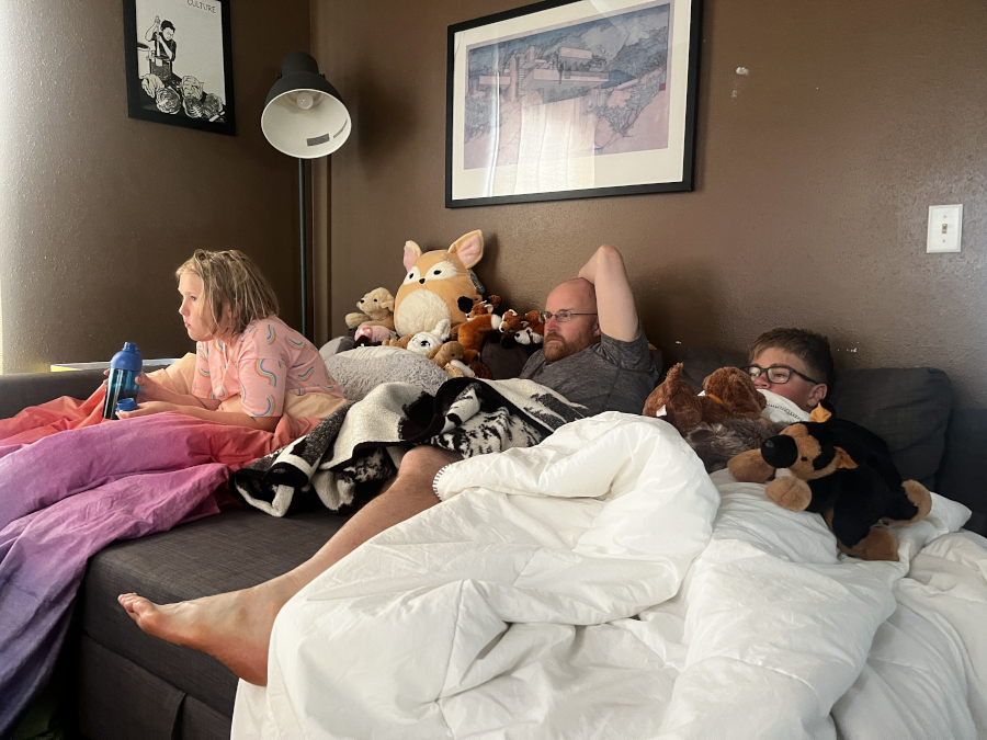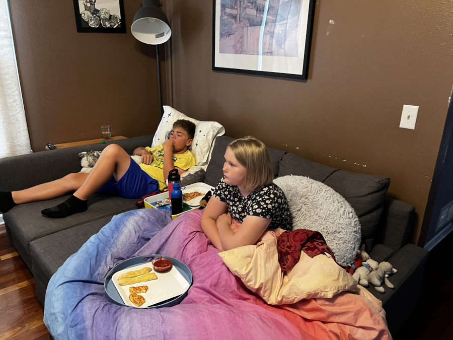 Me and Freya - watching Soapy play Tears of the Kingdom while we had breakfast.