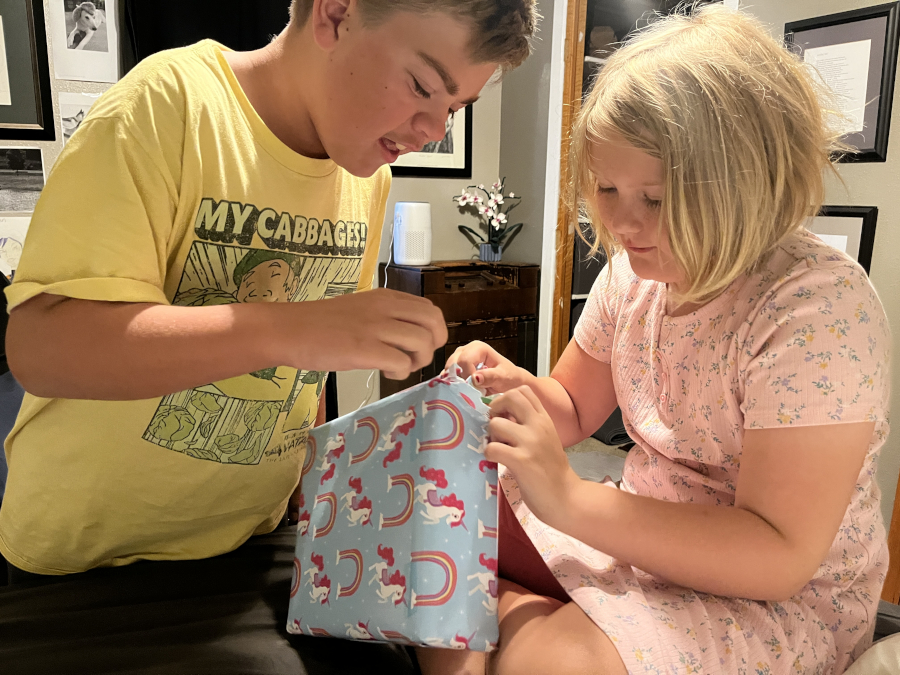 Freya opening one of her presents.