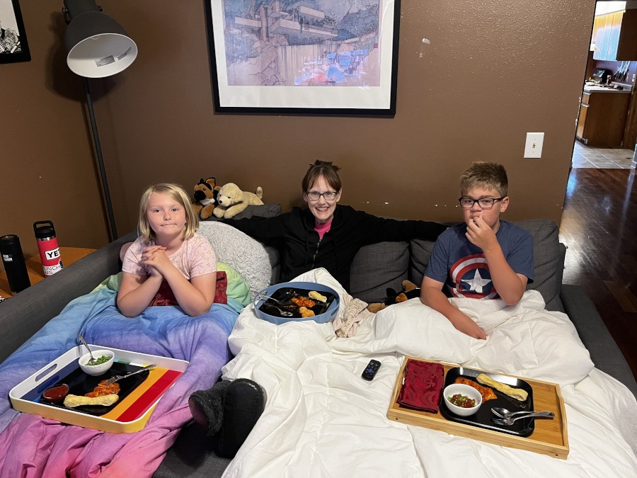 GG came over on Day 3! She met us at Recess and spent the night! We all watched Willy Wonka and the Chocolate Factory. Mom made ravioli bake for supper - yum!