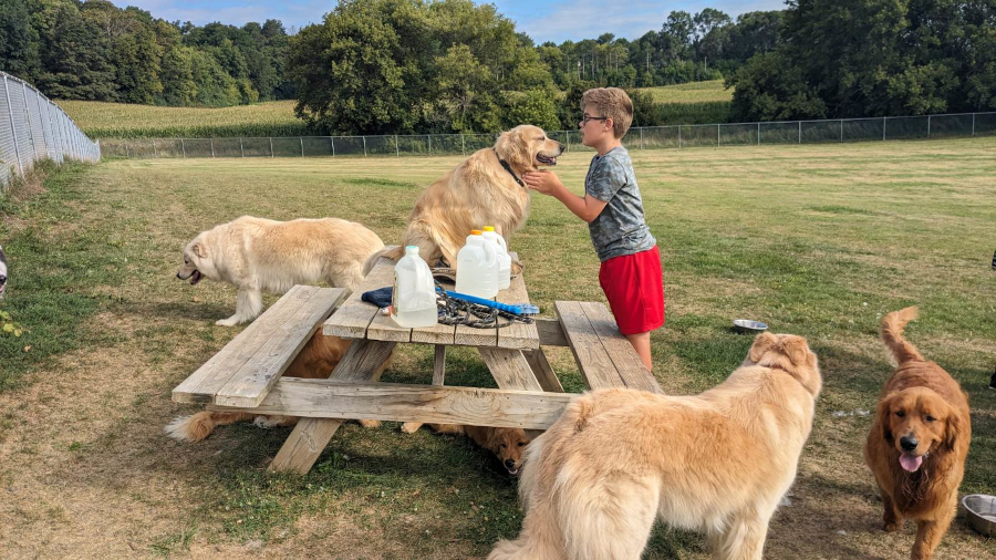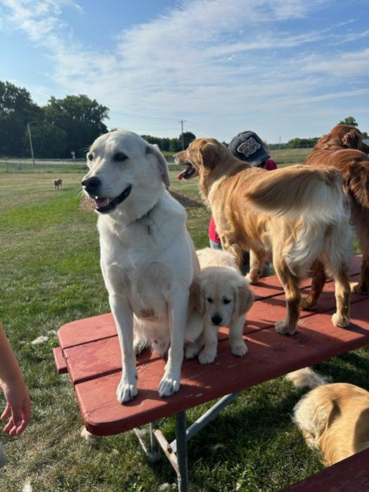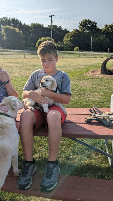 And this week I went to stay with Grandma Wynne and Grandpa Al. I went to the dog pak and met a new friend.