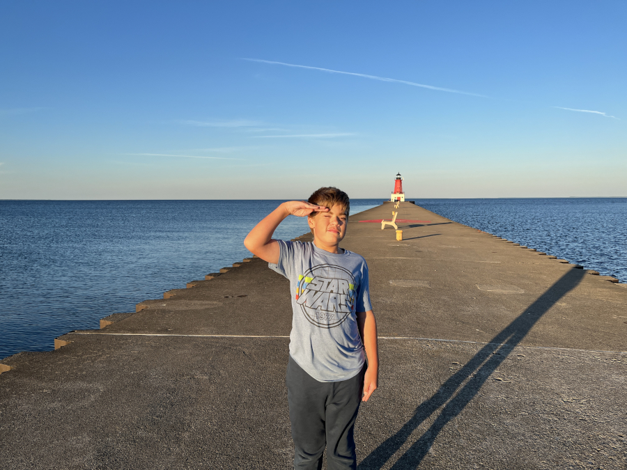 After we got to the hotel in Marinette, Wisconsin, we went to get Culver's for supper. Then Dad and I went to see the lighthouse just across the border in Menominee, Michigan.