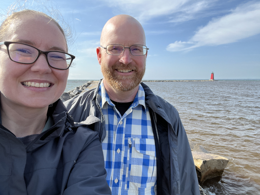 Today we started in Wisconsin. Lots of good choices for free breakfast, and it was another beautiful day. We were in Michigan for most of the day, driving along the lake.