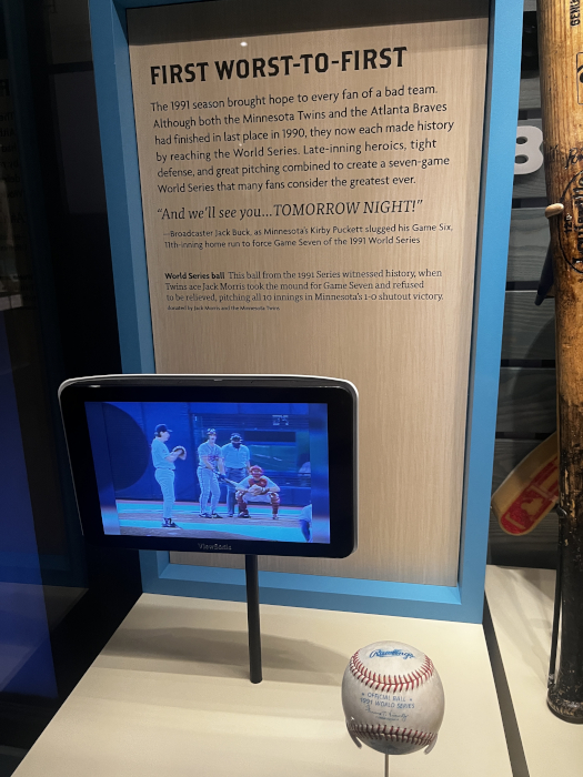 We took a lot more pictures than what I am going to share here. There were so many artifacts from baseball history - like all seven hats Nolan Ryan wore when he pitched his no-hitters, and the bat Hank Aaron used when he passed Babe Ruth for most home runs. And the plaques...we took so many pictures of the plaques...(maybe someday I will add those to this list, or even make a separate post for them). We started in the museum part of the building.