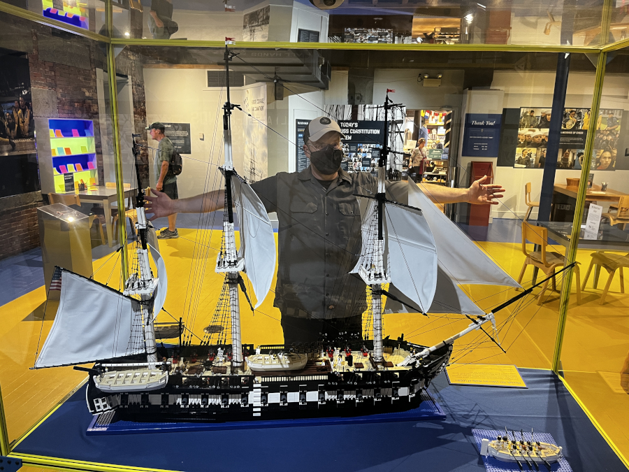 We found LEGO! A model of the USS Constitution build out of LEGO - it was to scale for minifigures, too.