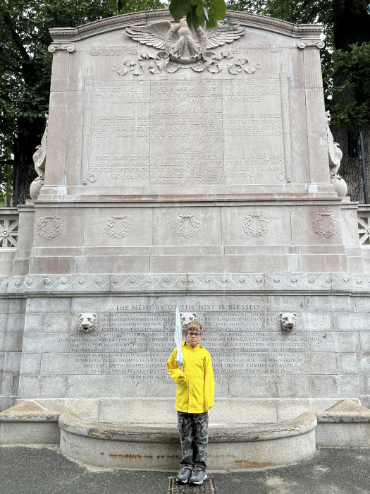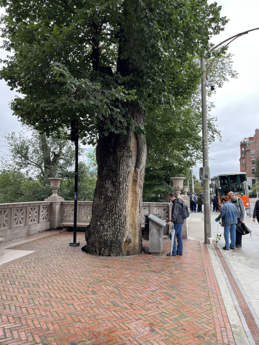 There are two living Elm trees on each side of the monument - they were planted in 1780 by John Hancock, who used to live across the street from where the monument is now. An arborist visits them every week to make sure they stay healthy.