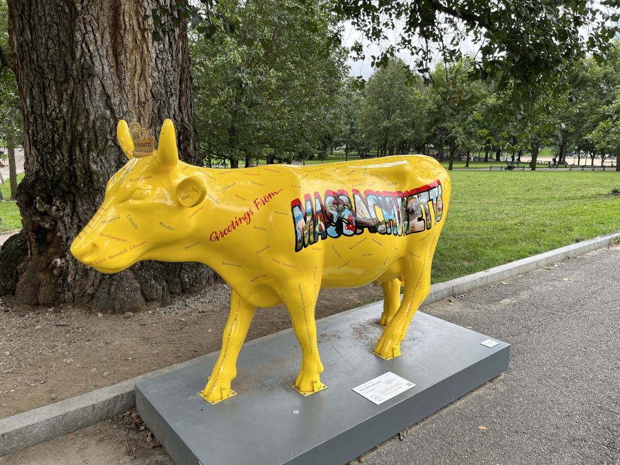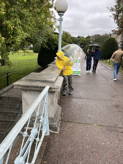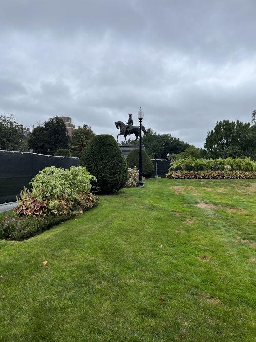 Not the best shot of the Washington statue in Boston Common Garden, but the best we could do under the circumstances.