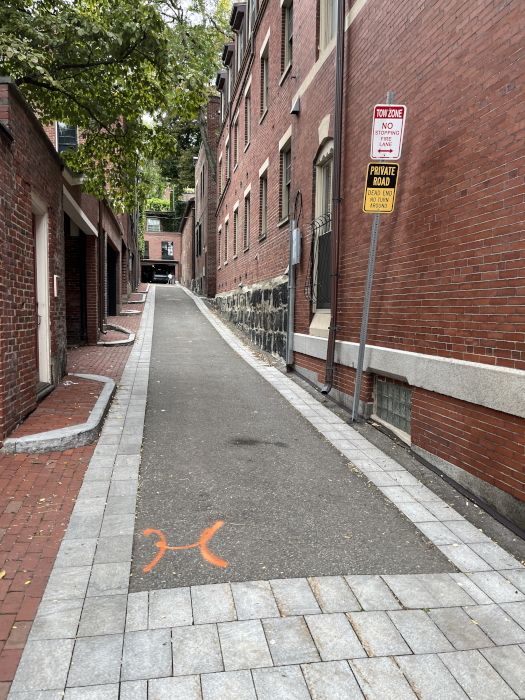 These streets are about eight feet wide - enough to accomodate a standard cart at the time they were built.