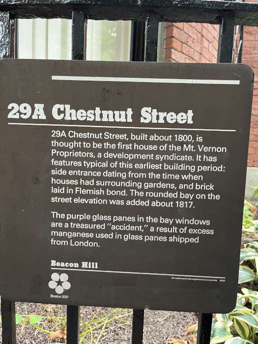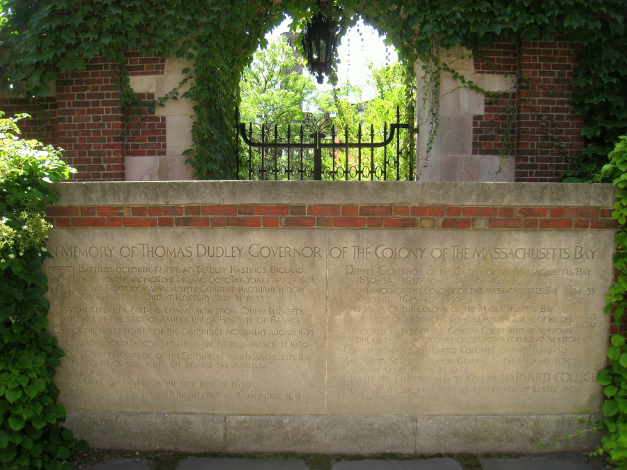 Today was our second day in Boston and we went on another tour, this one in the Beacon Hill neighborhood, learning about the area during the lead-up to the Civil War and the areas African American history, including its participation in the Underground Railroad. On our way down to Boston Common to catch our tour at the Prescott House, we stopped at Harvard to see if we could find the plaque for Thomas Dudley, my great (x11) grandfather, and one of the founders of the school. Alas, it was locked up, so we could not see it. But we found the gate, and a picture of the inscription on Dudley's Wikipedia page.