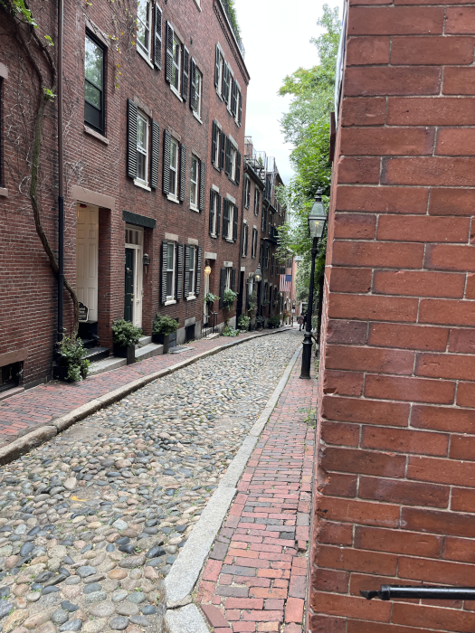 This is Acorn Street, which still has it's original stone surface from the 200+ years ago. It is one of the most photographed streets in America.