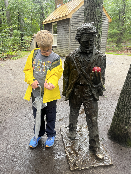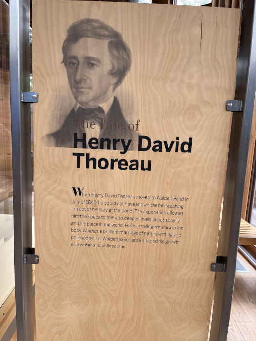 Then it was time to go to Walden Pond. First we stopped at the visitor center, which was full of Thoreau stuff - Mom and Dad were pretty excited.