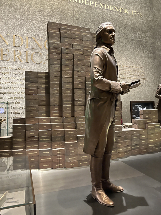 This statue of Jefferson is a good example of what the museum does so well: behind Jefferson is a pile of bricks with the names of some of the 609 slaves he owned.