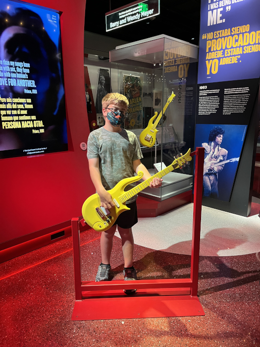 I don't really know who Prince is, but this is his guitar (well, the one behind me is - I'm holding a fake one).