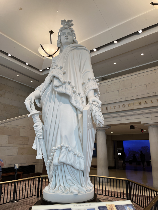 A model of the statue at the top of the Capitol dome, which is currently...you guessed it: under construction.
