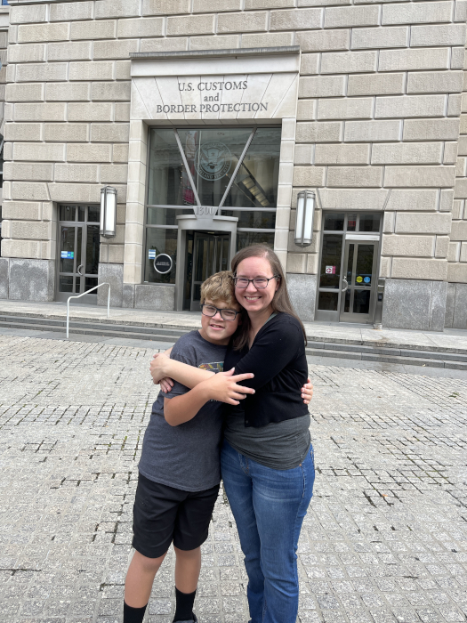 In front of the US Customs and Border Protection Building, which was the entrance to the parking ramp we used every day.