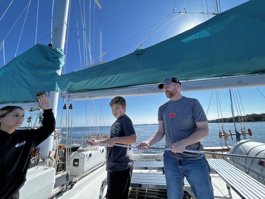I actually got to give the commands and turn the wheel all the way starboard and hold it until we turned around.