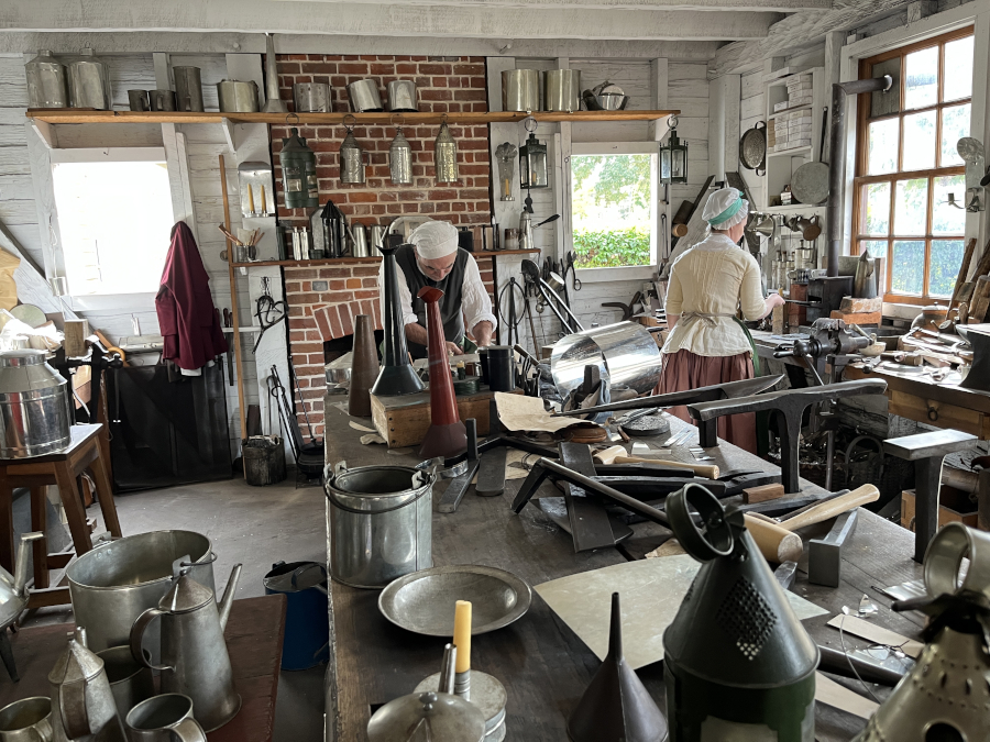 The tinsmith, who made supplies for the military and the town - they showed us how they crimped and soldered the metal to make all sorts of useful things like cups and buckets.