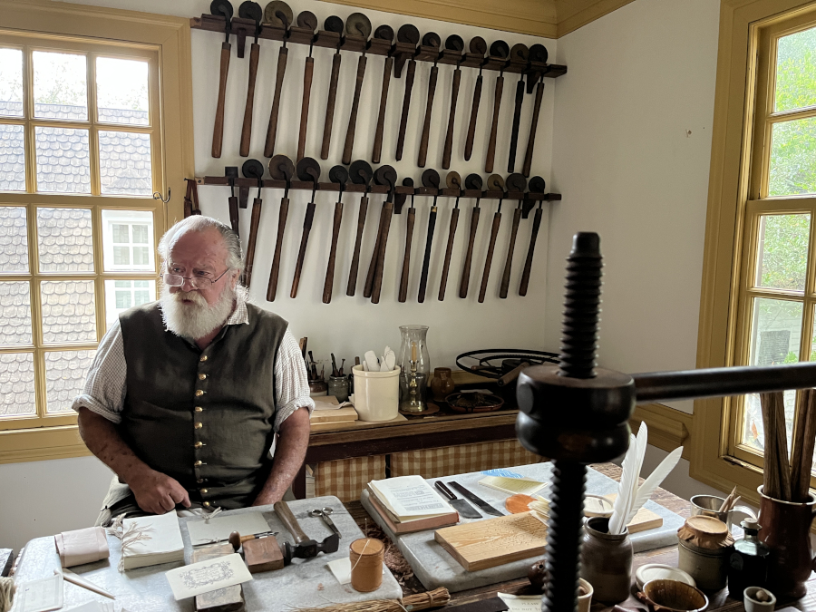 Most of the binding in Williamsburg was of blank books - printing and binding a book was required more labor than the town could provide, and it was too cost prohibitive. Mostly the binder created blank volume for record-keeping.