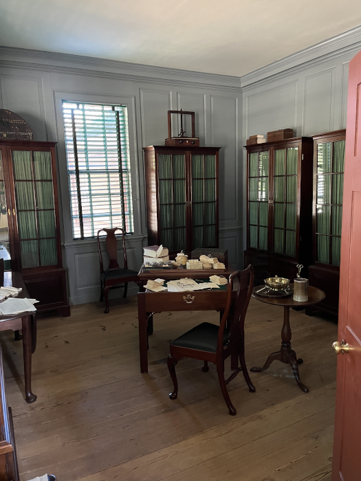 Mr. Randolph's "closet" - which is what they called a private room back then. Really, it's his office. The bookshelves were full when he was alive, and when he died the books went to his cousin, Thomas Jefferson, and ended up in the Library of COngress when Jefferson sold his collection to Congress after the British burned the library in the War of 1812.