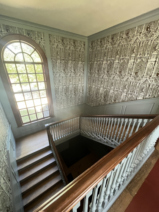 Why a picture of a stairway? This stairway makes a statement of wealth and power - it takes up more space than many houses in Williamsburg, and certainly more than most houses in rural Virginia. Along with the fancy wallpaper, and the rounded window, it shows that the Randolphs are immensely wealthy.