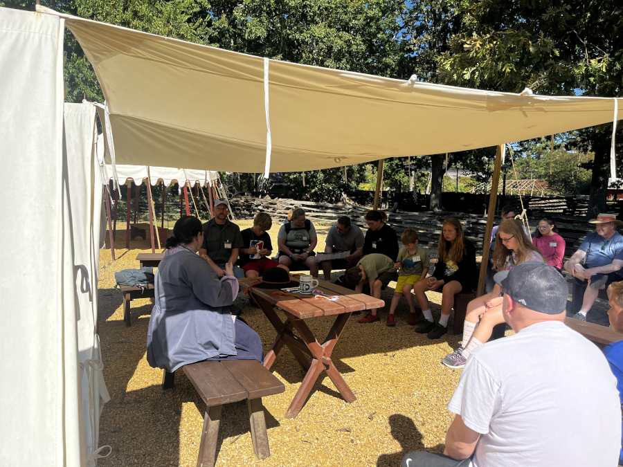 After drills, we talked to Thomas Jefferson for a while. He was really funny - and I answered his trick question correctly. He asked: Who won the American Revolution? And the correct answer was: no one - we are still fighting it every day that we have a representative government.