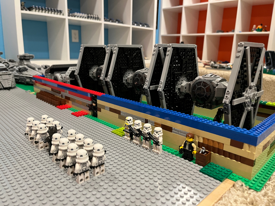 I stayed home this weekend. I had a couple of teeth come out, so I am either down to one baby tooth left or zero baby teeth left. None of us can remember. We all watched some shows together, and we all worked on our own projects. Dad worked on his computer, Mom did some trip and school planning, and I worked on my LEGO projects and on learning about castles and medieval history.