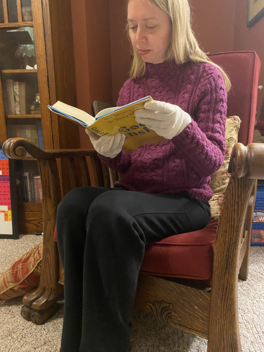 Caroline sent a picture to show how careful she is being with the book Dad lent to her.