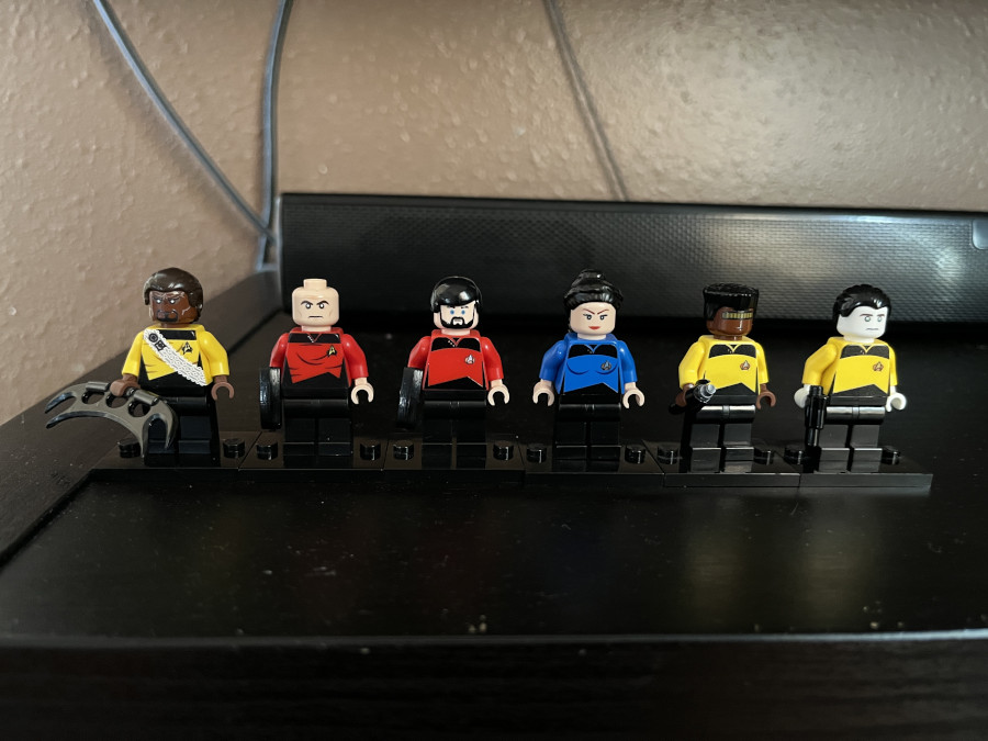 Here are the Enterprise D bridge crew we have collected so far (these are real LEGO, but they are custom made, not official LEGO minifigs).