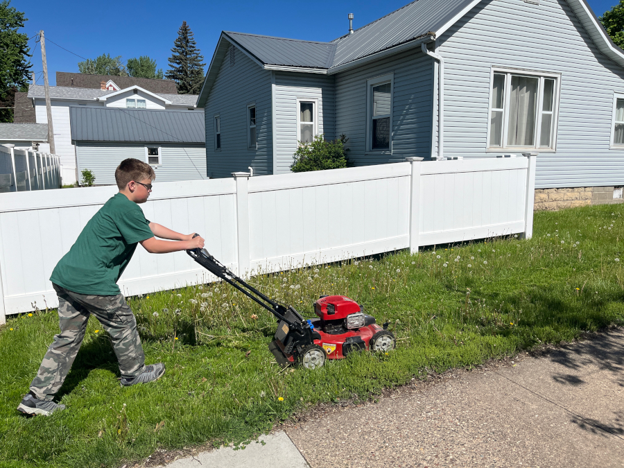 I mowed the lawn! Dad helped a little, but I did almost all of it myself.