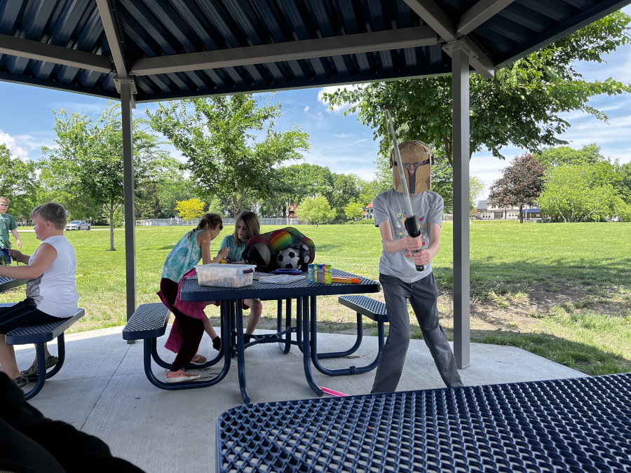 Dad dropped me off at Grandpa Al and Grandma Wynne's on his way home. I stayed there until Sunday morning, when Dad came back to pick me up. Mostly I watched Dragon Prince, read my book, and played with my new minifigures. And of course I snuggled Loki and went to the dog park.