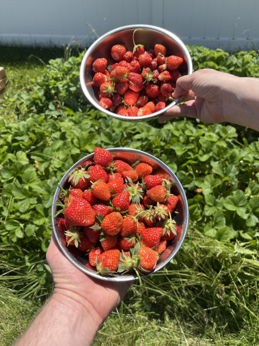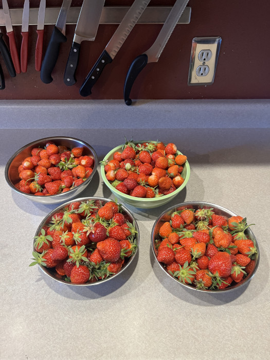 We did some other stuff this week as well. We laughed a lot watching our shows. And our strawberries were ready. Dad and I also went on some bike rides (no pictures of those). And I mowed the lawn again! I'm getting better at it!