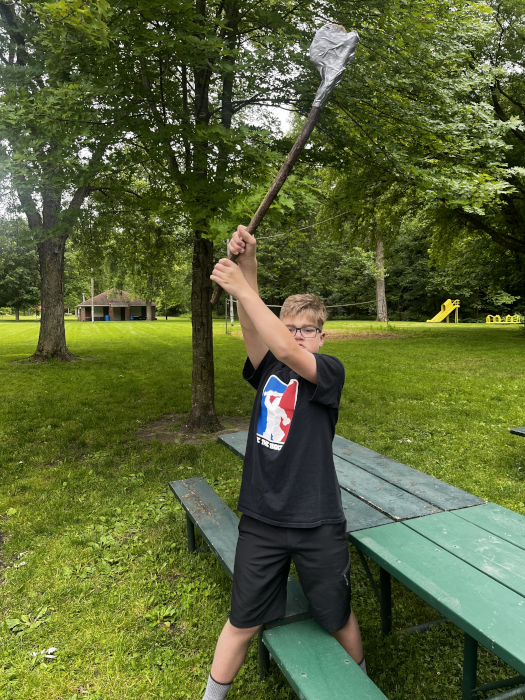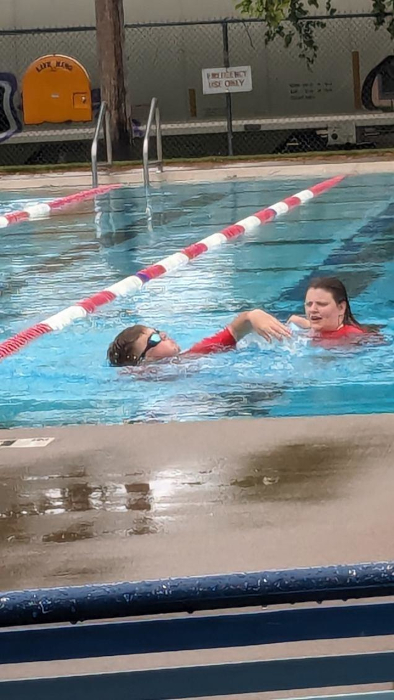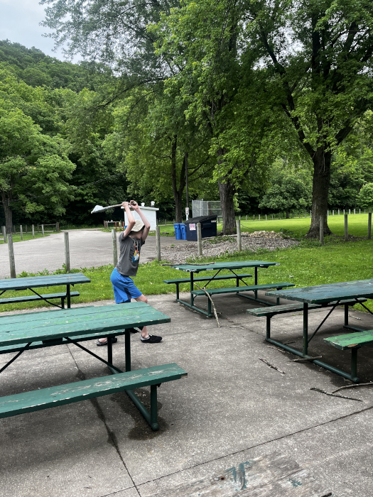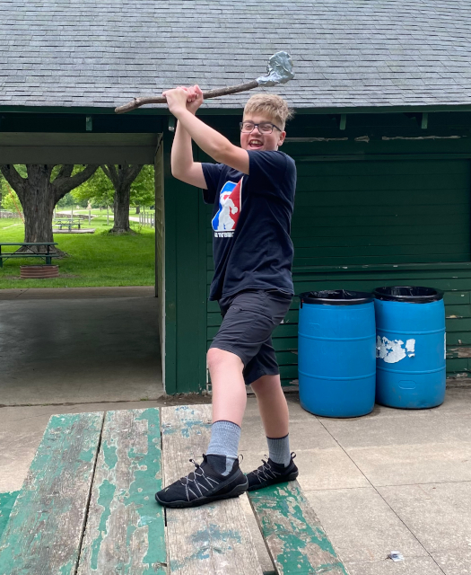 The second day of swimming was less nice - only about 63 degrees and it was raining. Grandpa Al and Grandma Wynne came over to take me to my lesson because Mom had some doctor appointments. The doctors were looking at her throat to see if there is a problem with her swallowing. After lunch, we went to Recess. It was just me and Jonathan, and we made some weapons.