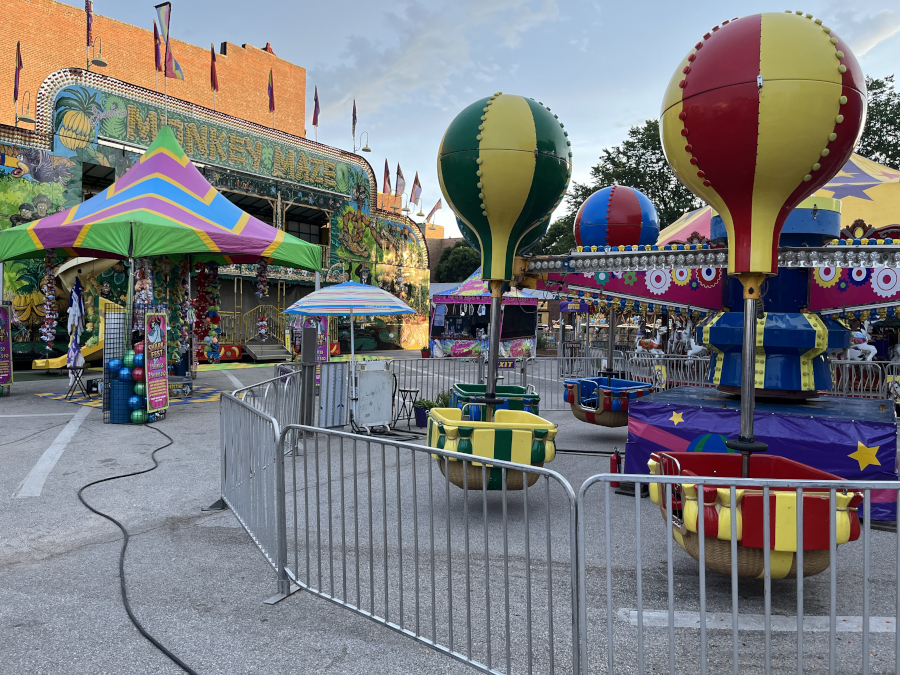 Dad and I took an early morning bike ride to beat the rain. We left the house at 5:45 AM - no one was out. We rode downtown to see the carnival rides and to check out the river. In the afternoon we watched a movie. Well, the first part of a really long movie.
