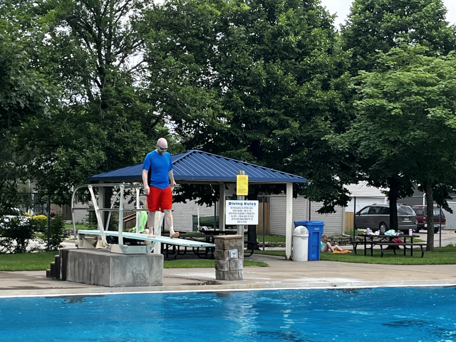 One more trip to the pool to finish off the week. We met Jonathan and his parents at the pool Sunday afternoon. This time Dad went swimming! He did the slide and the diving board. We stayed for a couple of hours. It was really hot, but the water felt good. And it was nice to be at the pool when there wasn't much of a crowd.