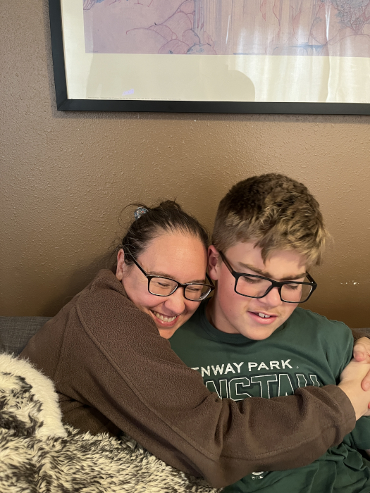 Snuggling with Mom before Dad drove me over to Grandpa Al and Grandma Wynne's.