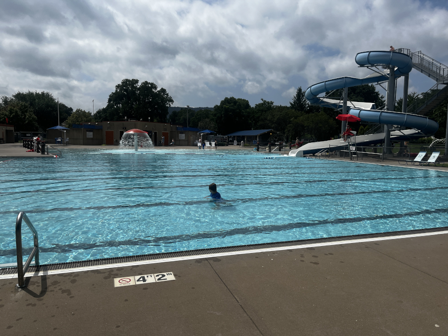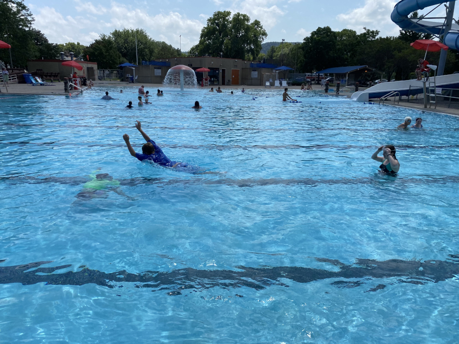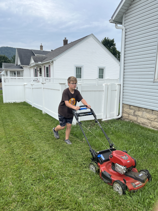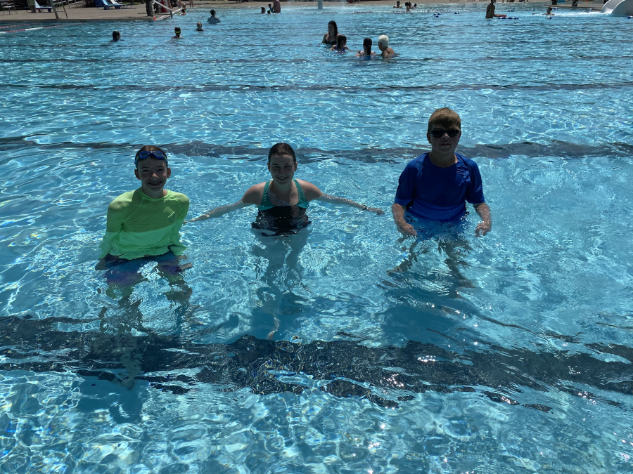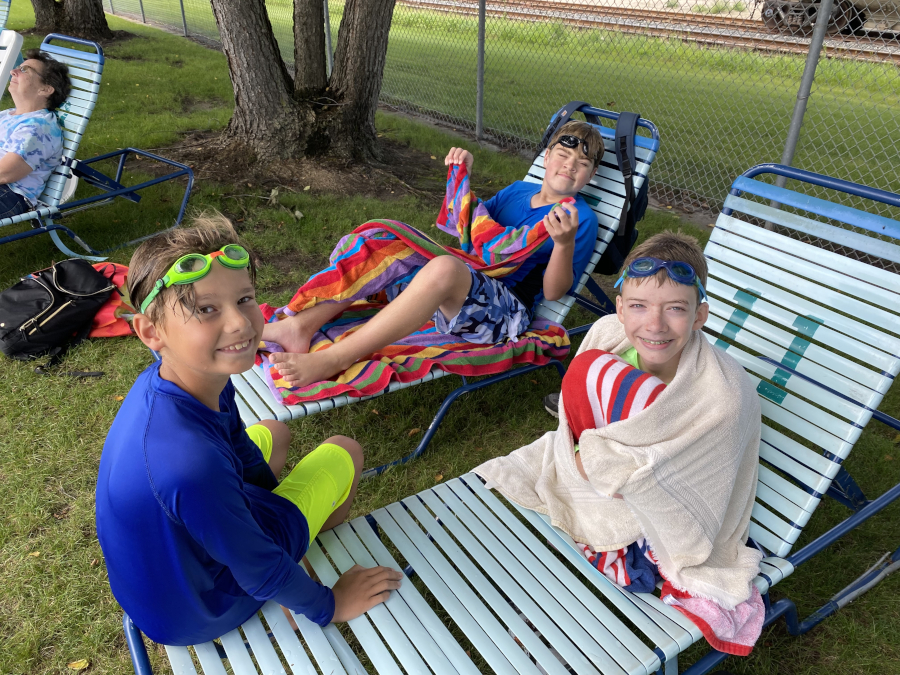 On Sunday, I mowed the lawn, and Mom and I went to the pool to meet Caroline, Jonathan, and Julia. It was Mom's first time out and about since the surgery.