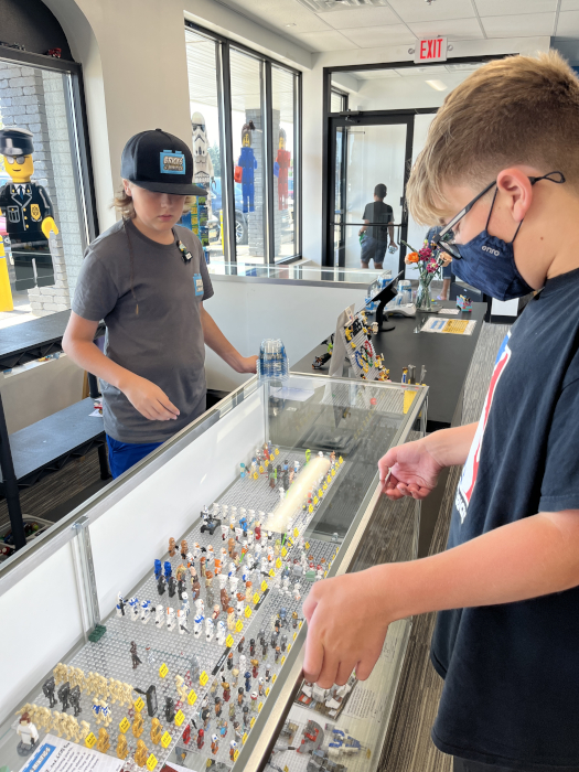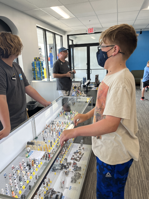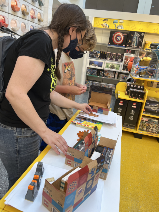 We all had eye exams first thing in the morning. Then we packed up and headed to GG and Grandpa Kevin's to pick up some presents for Freya. We then went on to our hotel, with a stop at a Bricks and Minfigs we had never been to before. After we checked in, we went to the LEGO Store for some more LEGO fun.