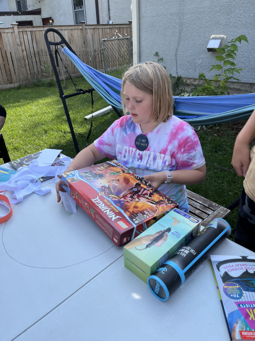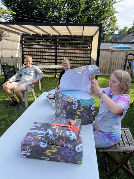 I got a Sand trooper, and another Senate Commando. It was still raining when we left BAM. Dad and I went to pick up Mom from the hotel, and then we went to Freya's house for supper and presents and cake. The rain had stopped by then, the sun came out, and it was a really nice night to hang out in the back yard.