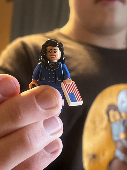 I bought a Kamala Harris minifig! Now I need a Tim Walz. I also bought a Ron Swanson minifig, but we forgot to get a picture of it.