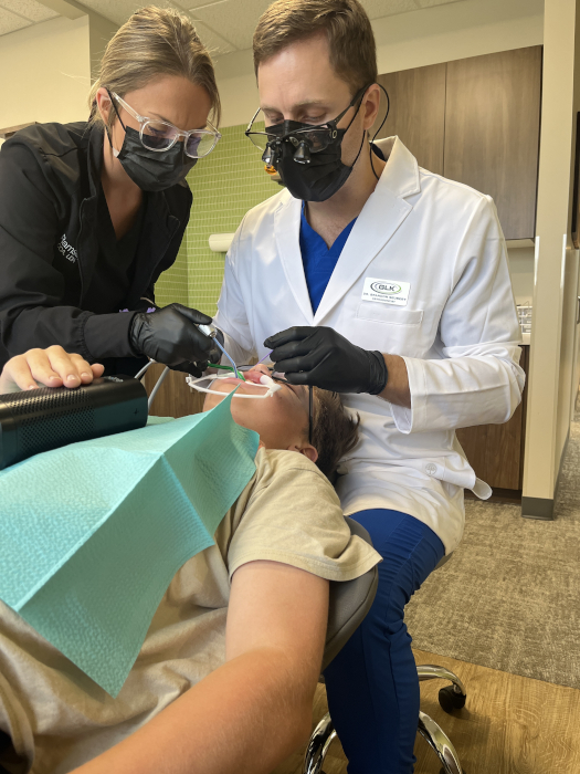 Getting my teeth cleaned before they glued on the brackets.