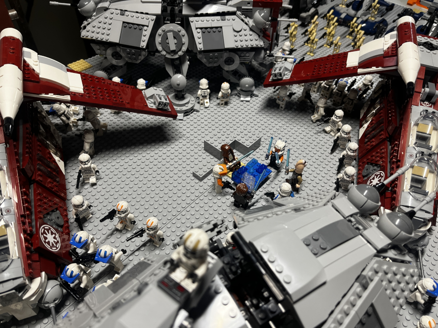 My teeth really hurt for a couple of days, but then they didn't bother me at all and I didn't have to take any medicine after Wednesday. We took a little break from school while I adjusted to all the new metal in my mouth (I still have the expander in there), and I worked on a new LEGO project: recreating the Landing at Point Rain from Clone Wars season two, episode five.