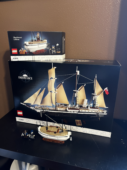 On display with the James Caird, which was a gift with purchase set that was only available the first day the Endurance was on sale.