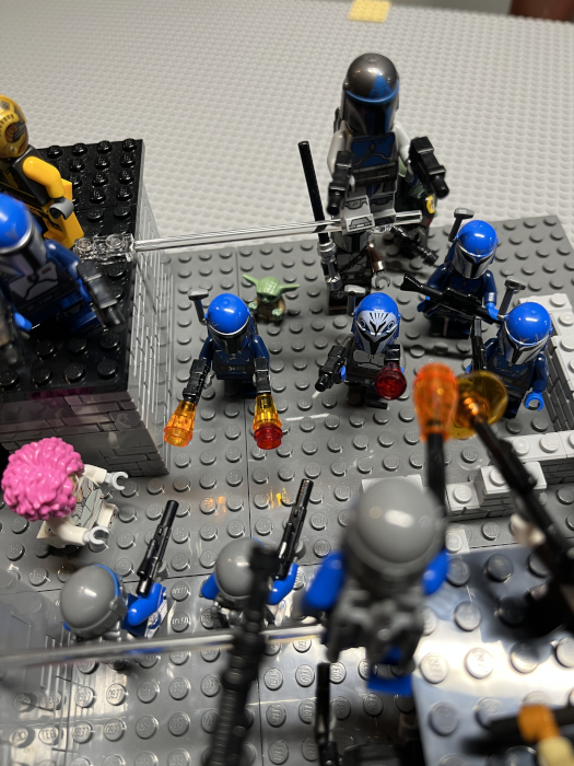 This is the battle on Nevarro when the Imperial remnants try to take abduct Grogu.