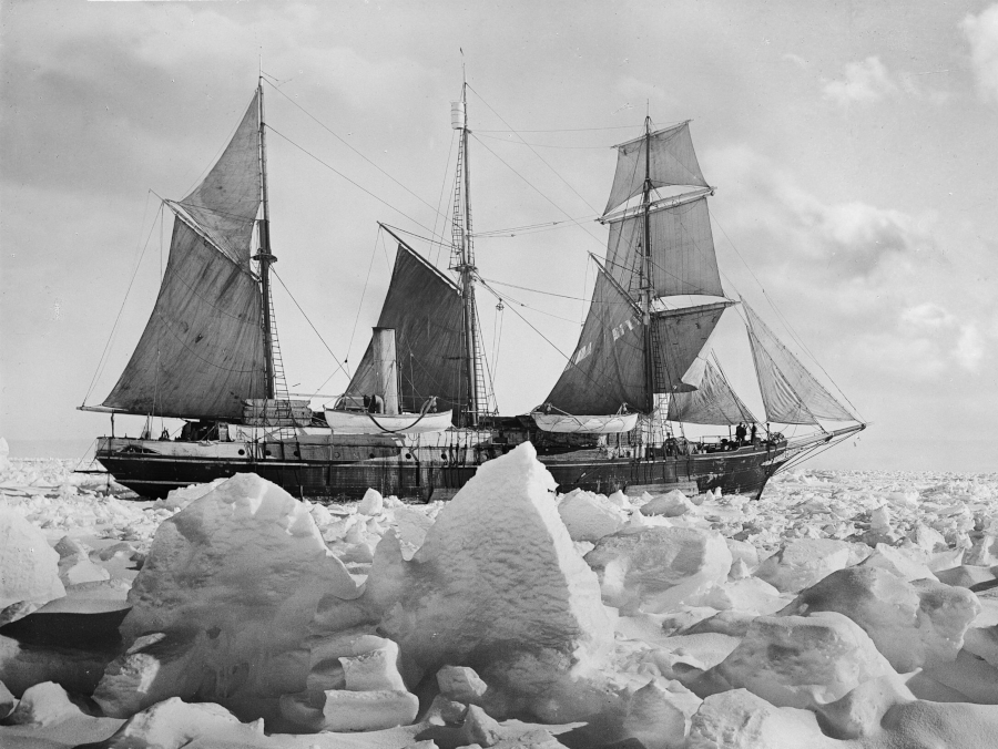 The Endurance with the James Caird, the lifeboat Shackleton used to go for help.
